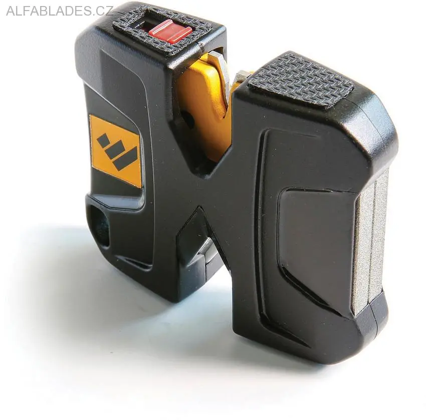 Karbidový a keramický brousek. Technologie Pivot Response Technology kopíruje křivku ostří pro konzistentnější okraj. Brousí i convex ostří. Diamantová brusná deska.
