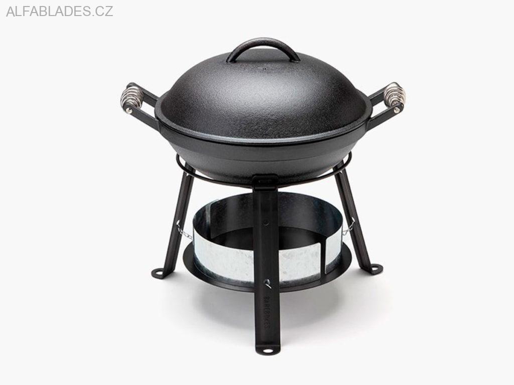 Gril.Wok. Udírna.Pánev. Pražírna.Fritéza. Hrnec. Litinový gril All-In-One je snem venkovních kuchařů.Litinová základna a klenuté víko, grilovací rošt, pečicí rošt, stativ a tác na uhlí se spojují v nesčetných konfiguracích, aby rozšířily vaše možnosti venkovního stolování, a sbalily se do jednoho samostatného svazku, abyste minimalizovali to, co přenášíte.