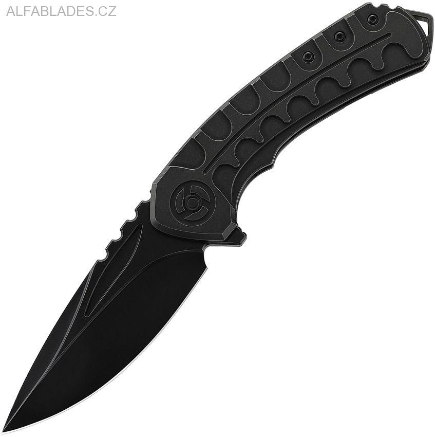 Čepel DropPoint z oceli Böhler M390 Blackwash finish.