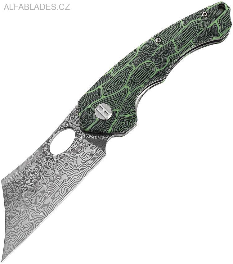 BESTECH KNIVES Skirmish Black,Green/Damascus